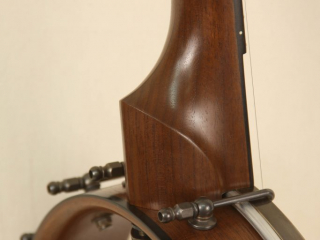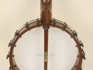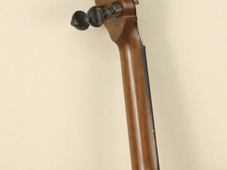 This banjo has the standard Seeders 11″ Walnut Style 1 specs. It features a simple look with a focus on play ability and tone. The rolled brass tone ring is an excellent choice for old-time playing. The neck is a modern C shape neck for a comfortable feel without being bulky in your hands.