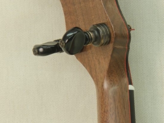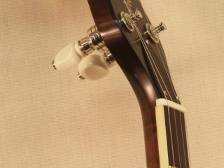 This is a 12″ Walnut Style 3 variation. This banjo has a powerful well rounded tone unique to the Dobson Special with a comfortable neck profile ideal for all hand sizes and comfort while playing all over the neck. The Dobson Special utilizes a Dobson tone ring mounted on a rolled brass ring to isolate the tone ring from the wooden rim giving it a unique and powerful Dobson sound with more balanced and a crisp overall tone. The low end range is enhanced slightly with the larger 12″ rim. It’s simple but elegant inlays and overall design has a vintage inspired look while adding modern play ability and durability.