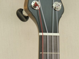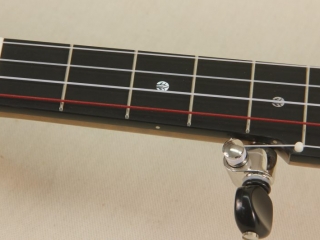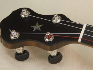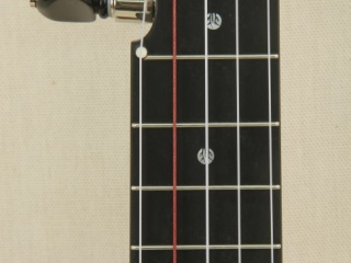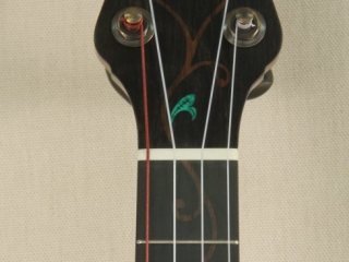 A piccolo/pony banjo made from Curly Maple with a Ladybug inlay.