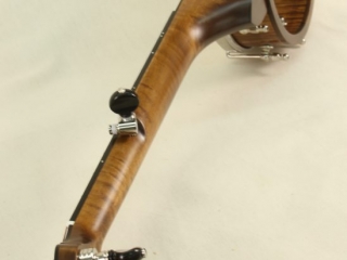 This is a variation of the Seeders Style 3 Dobson Special made with Curly Maple. This banjo has a powerful well rounded tone unique to the Dobson Special with a comfortable neck profile ideal for all hand sizes and comfort while playing all over the neck. The Dobson Special utilizes a Dobson tone ring mounted on a rolled brass ring to isolate the tone ring from the wooden rim giving it a unique and powerful Dobson sound with more balanced and a crisp overall tone. It’s simple but elegant inlays and overall design has a vintage inspired look while adding modern play ability and durability.