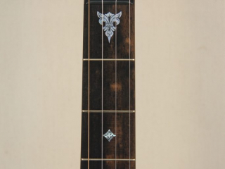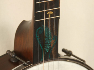 Other than the color of the reconstone inlays, this banjo is identical to #122. This is one of my personal banjos that I currently play and now features a Menzies Goat Skin head.