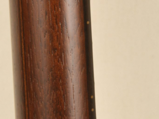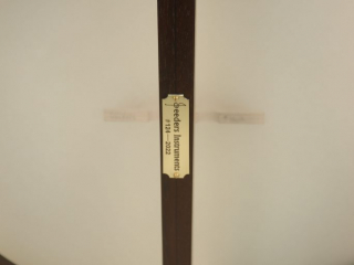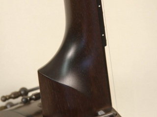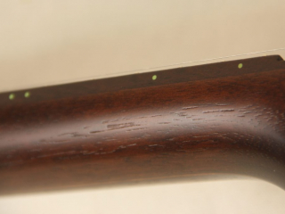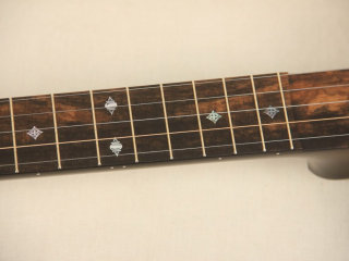 A simple but elegant variation of my Walnut 11-5/8″ model using Abalone inlays and a dark stain.