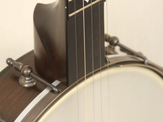 This banjo has a powerful well rounded tone unique to the Dobson Special with a comfortable neck profile ideal for all hand sizes and comfort while playing all over the neck. The Dobson Special utilizes a Dobson tone ring mounted on a rolled brass ring to isolate the tone ring from the wooden rim giving it a unique and powerful Dobson sound with more balanced and a crisp overall tone. It’s simple but elegant inlays and overall design has a vintage inspired look while having modern playability and durability.