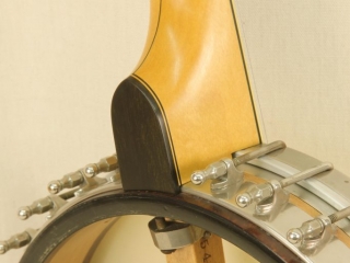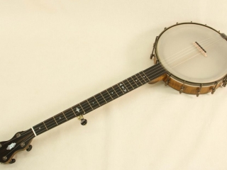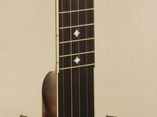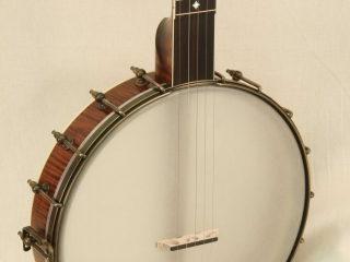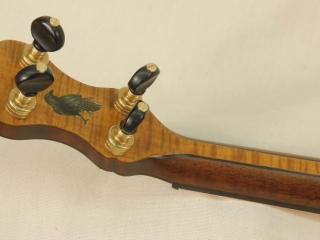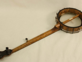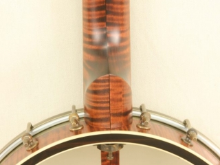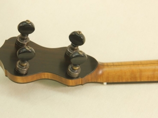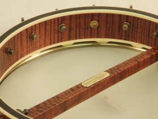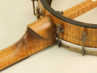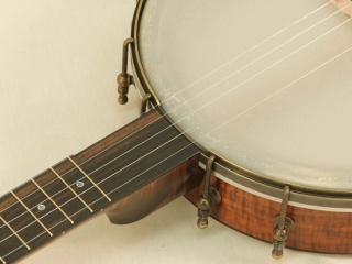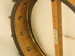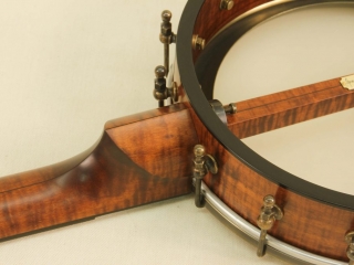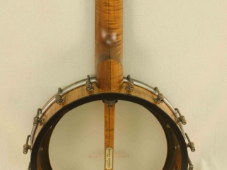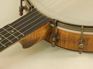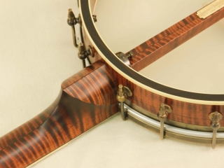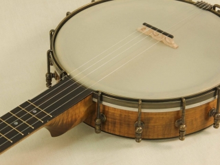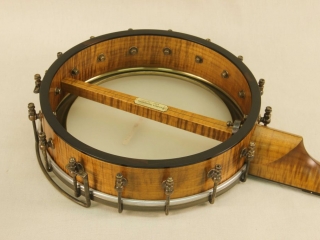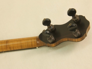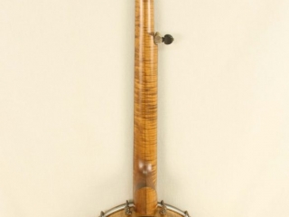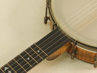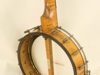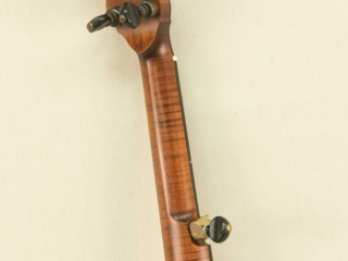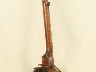 This is a variation of the Seeders Dobson Special made with Curly Maple. This banjo has a powerful well rounded tone unique to the Dobson Special with a comfortable neck profile ideal for all hand sizes and comfort while playing all over the neck. The Dobson Special utilizes a Dobson tone ring mounted on a rolled brass ring to isolate the tone ring from the wooden rim giving it a unique and powerful Dobson sound with more balanced and a crisp overall tone. It’s simple but elegant inlays and overall design has a vintage inspired look while adding modern play ability and durability.