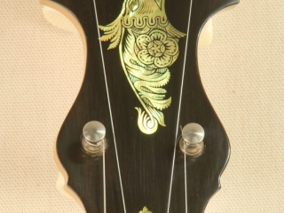 This 1923 Vega Whyte Laydie rim features a faithful recreation of a No. 2 Griffin style neck. The large 12″ Whyte Laydie rim is one of the most sought after of all original Vega rims from this era and the sound does not disappoint. The classic inlays and engravings compliment the sound that comes along with these rims making a perfect match for any vintage banjo fan. The PegHed tuners used on this banjo are an excellent tuner that give you a vintage look with the ease of a modern geared tuner. The neck shape is a slightly modified original Vega neck profile for excellent comfort and playability.