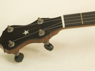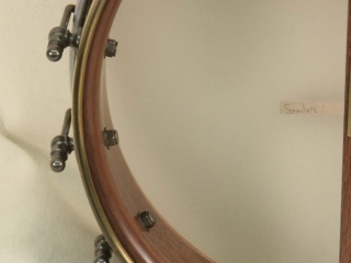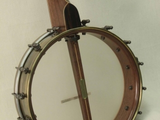 This banjo has the standard Seeders 12″ Walnut Style 1 specs. It features a simple look with a focus on play ability and tone. The rolled brass tone ring is an excellent choice for old-time playing and the 12″ rim gives it a rich deep sound. The neck is a modern C shape neck for a comfortable feel.
