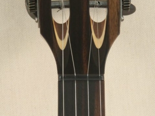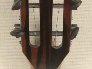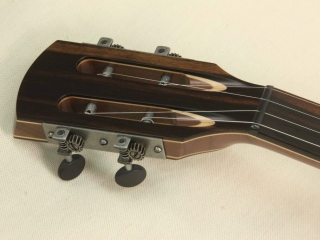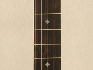 This banjo started its life in 1929 as a Vega Vegaphone tenor banjo. The new longneck was design to match the original neck in style and looks while also using some of Vega’s Pete Seeger model as influence. These old Vega rims make excellent conversions and the Tubaphone paired with the longneck scale is a perfect combination for a big deep sound. The three extra frets on the low end of the longneck add a great range of tunings and keys to play in.